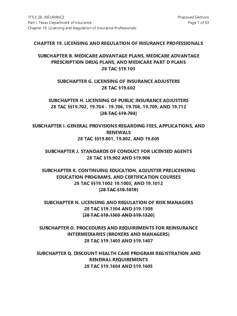 TITLE 28. INSURANCE Part I. Texas Department of Insurance Chapter 19. Licensing and Regulation of Insurance ProfessionalsProposed Sections Page 1 of 63CHAPTER 19. LICENSING AND REGULATION OF INSURANCE