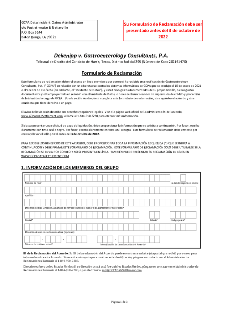 Obtener el gratis GCPA Claim Form ES