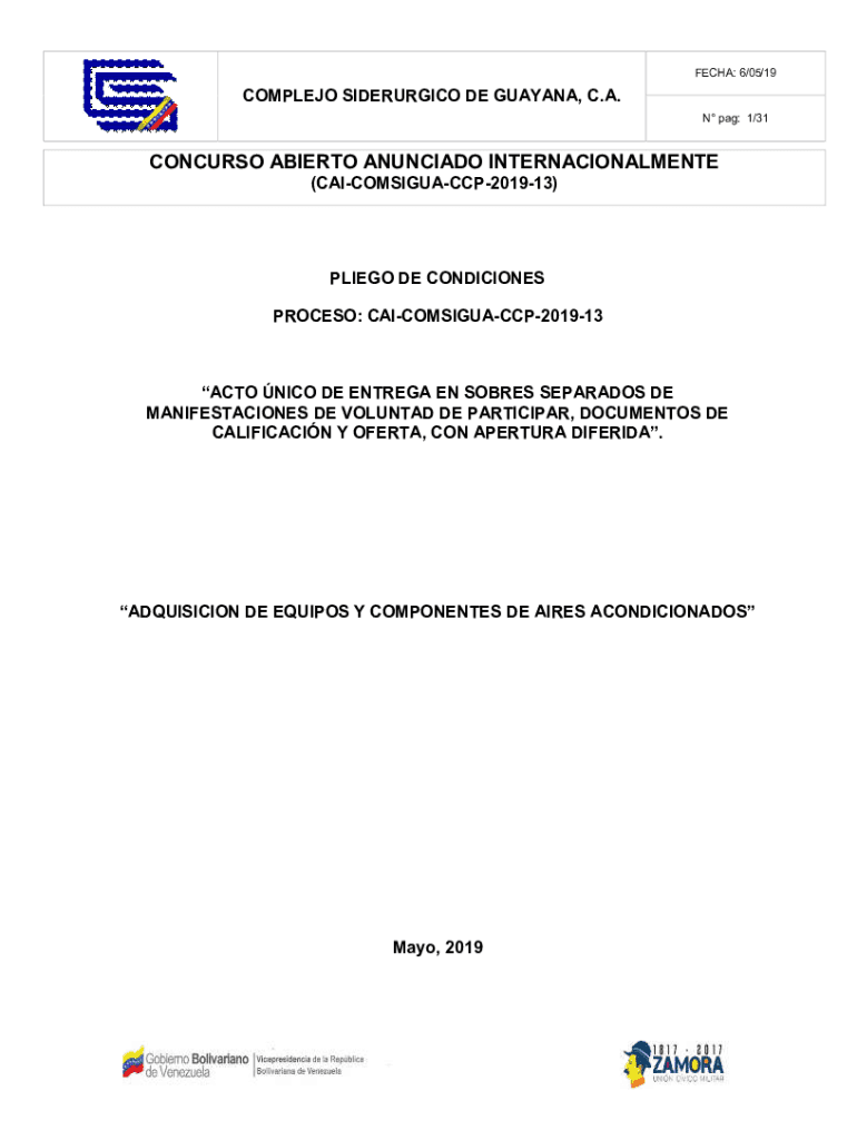 FEC HA: 6/05/19COMPLEJO SIDERURGICO DE GUYANA, C.A.