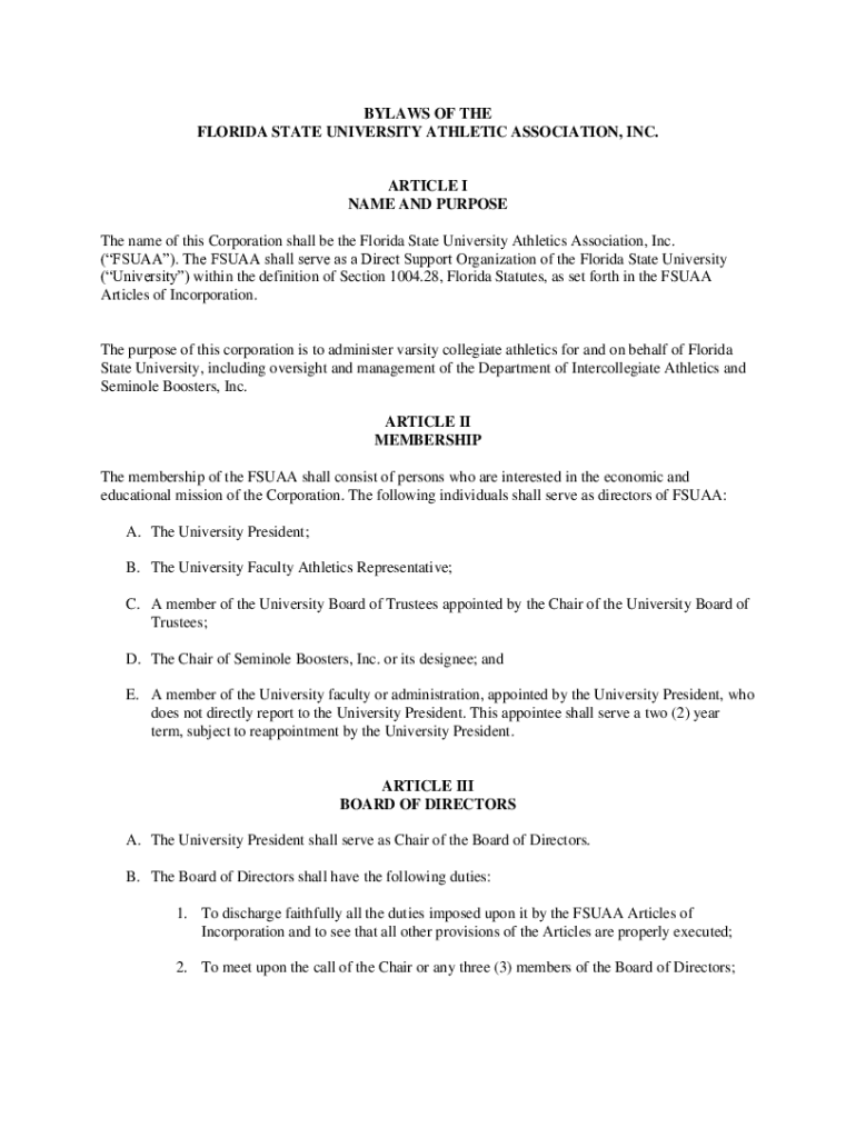 Get the free BYLAWS OF THE FLORIDA STATE UNIVERSITY ATHLETIC ...