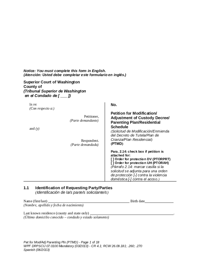 Notice: You must complete this in English. (Atencin template instructions