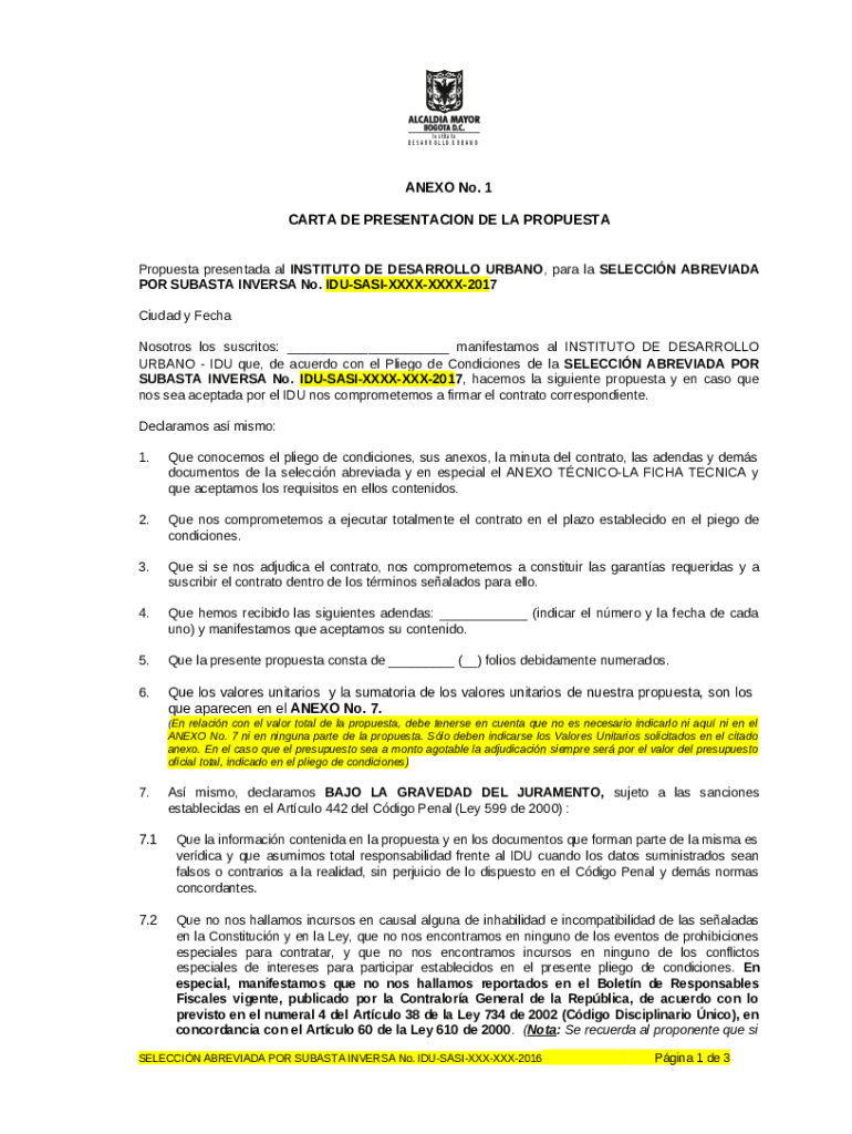 Template (A CONTINUACION SEPRESENTAN DOS MODELOS DE ANEXO 1 ELIMINE EL CORREPONDIENTE DE ACUERDO A LA NATURALEZA DEL PROCESO) instructions