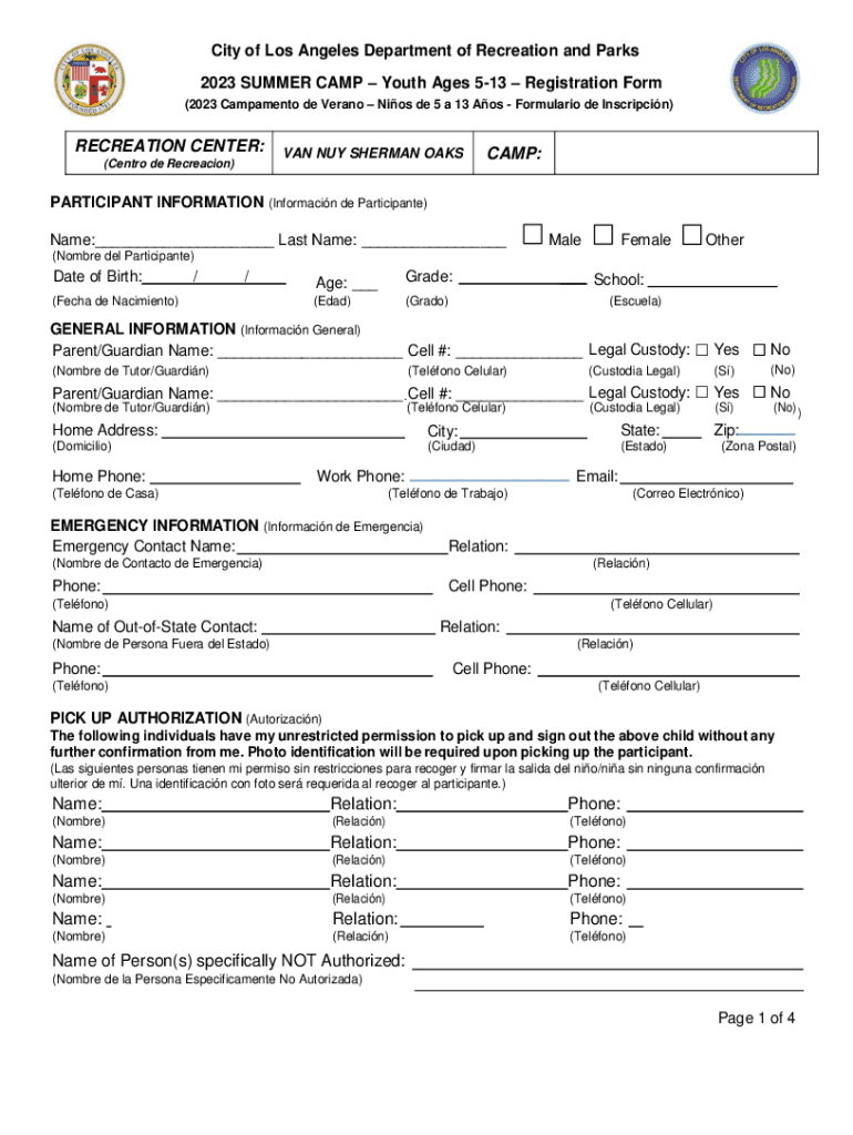 2023 SUMMER CAMP Youth Ages 513 Registration Form
