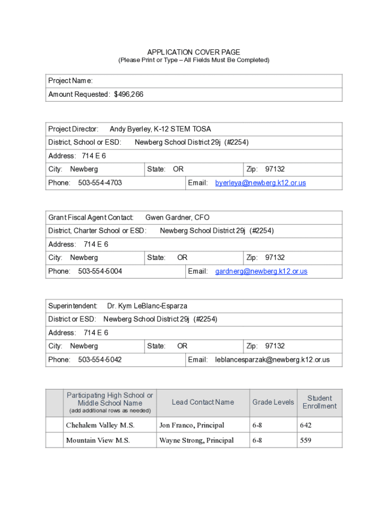 The newberg cte21 grant application can be filled out online or through a paper application provided by the Newberg school district.