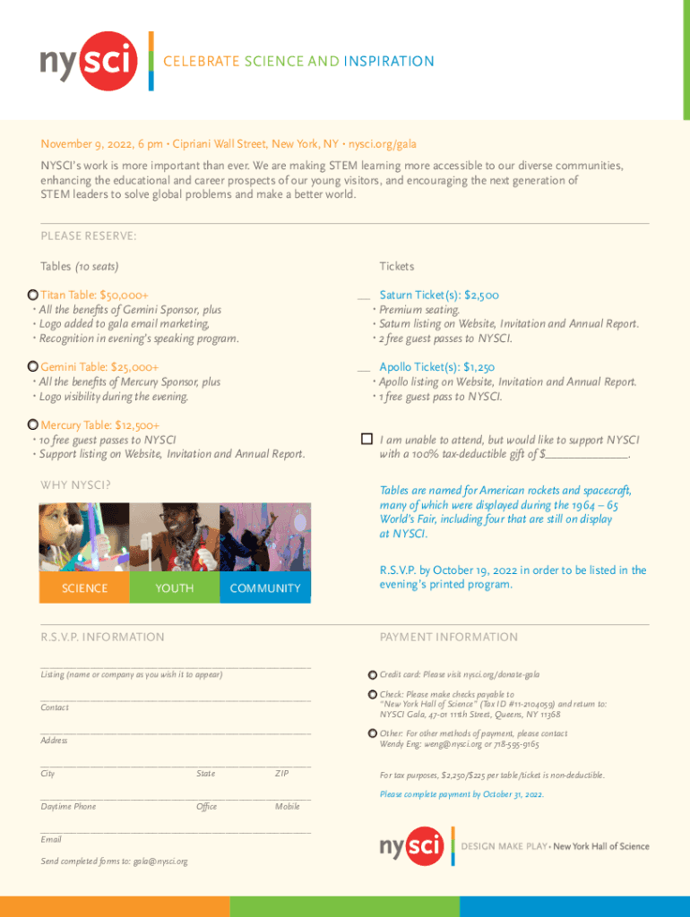 Get the free NYSCI's Celebrate Science and Inspiration Gala on ...