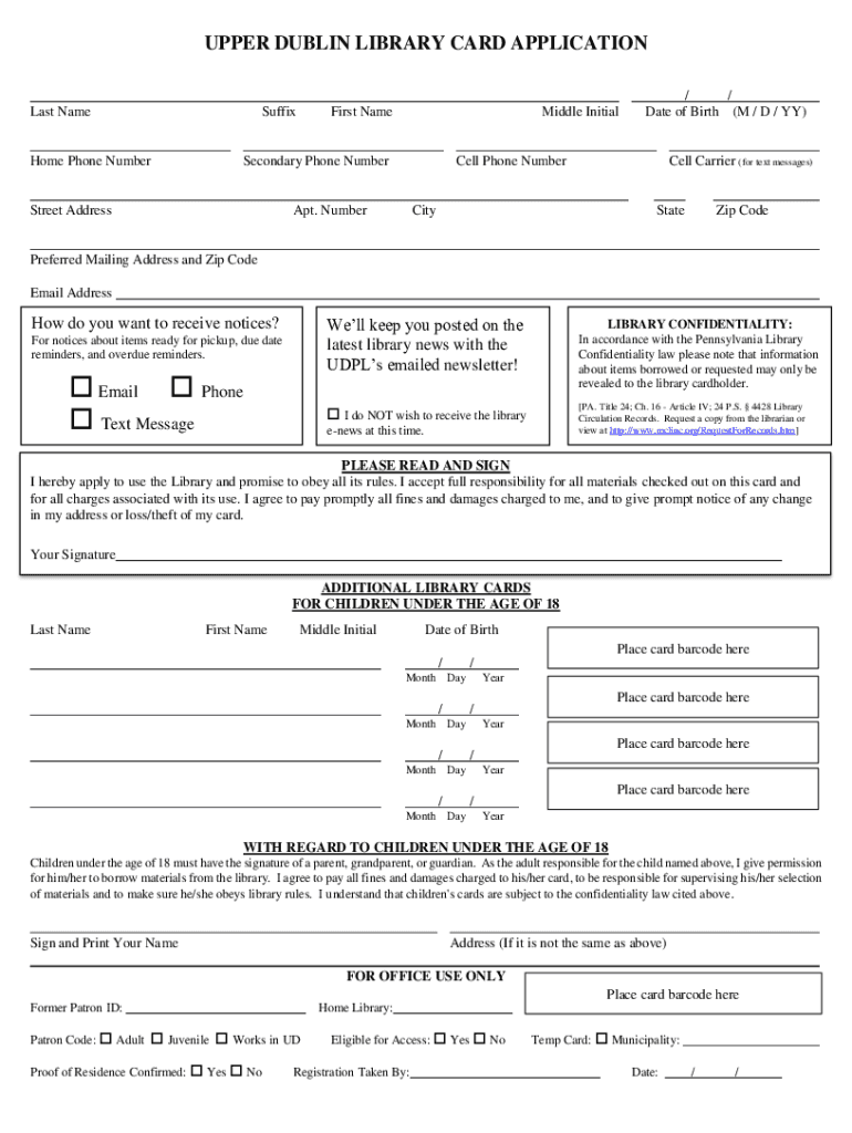 How to fill out upper dublin library card?