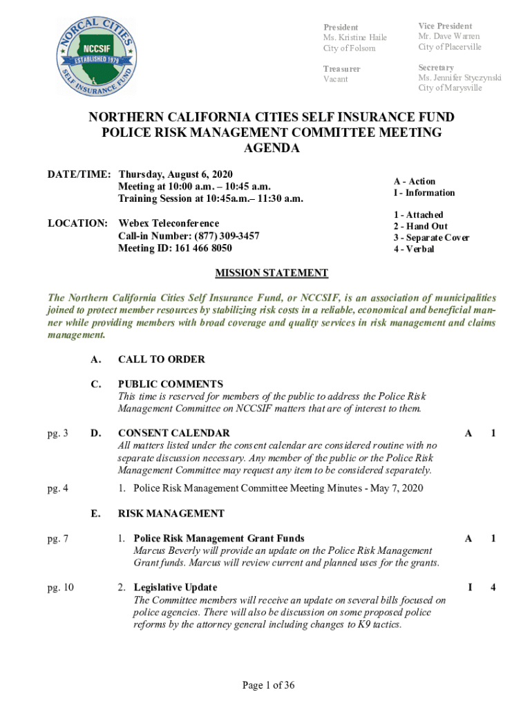 President Ms. Kristine Hail City of FolsomVice President Mr. Dave Warren City of PlacervilleTreasurer Vacant Secretary Ms. Jennifer Kaczyński City of MarysvilleNORTHERN CALIFORNIA CITIES SELF INSURANCE