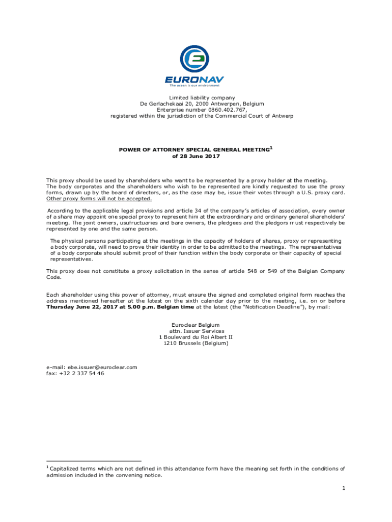 Limited liability company De Gerlachekaai 20, 2000 Antwerpen, Belgium Enterprise number 0860.402.767, registered within the jurisdiction of the Commercial Court of AntwerpPOWER OF ATTORNEY SPECIAL