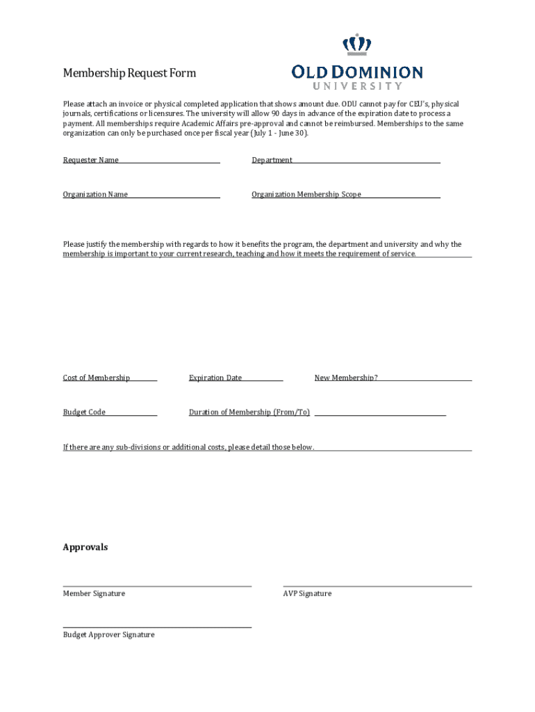 Membership Request Formulas attach an invoice or physical completed application that shows amount due. ODD cannot pay for Zeus, physical journals, certifications or licensures. The university will