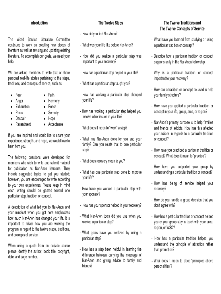 Introduction Twelve Steps How did you find Aragon? The World Service Literature Committee continues to work on creating new pieces of literature as well as revising and updating existing literature.