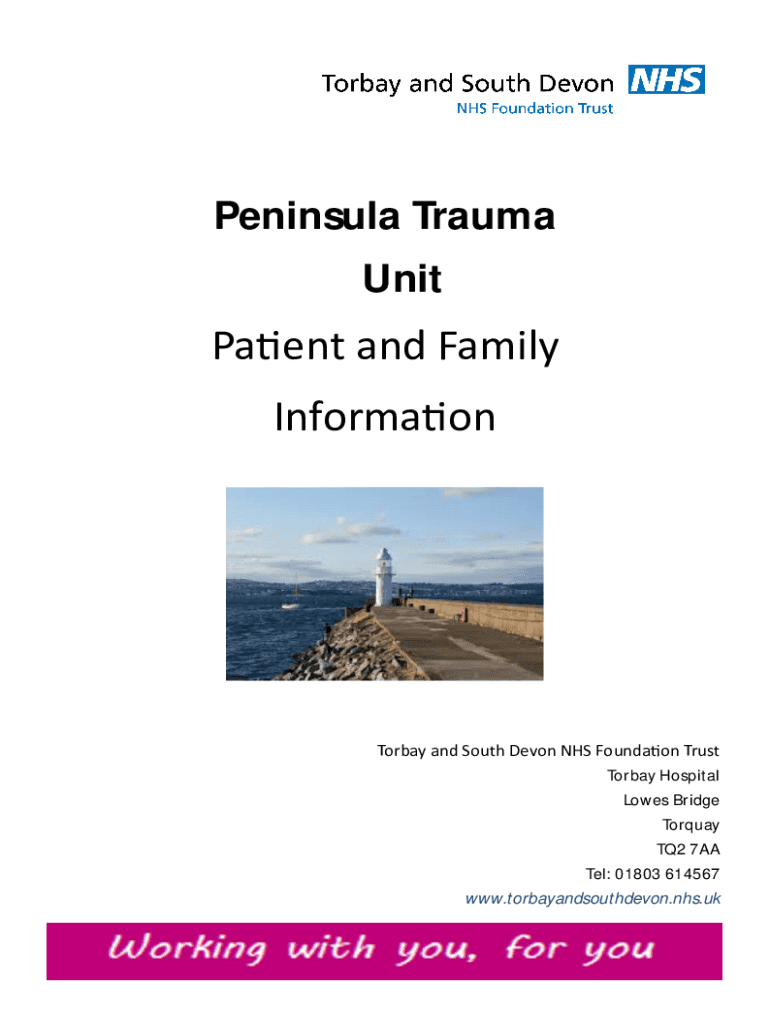 Peninsula Trauma Unit Pa ENT and Family Inform Norway and South Devon NHS Found on Trust Tor bay Hospital Lowes Bridge Tor quay TQ2 7AA Tel: 01803 614567 www.torbayandsouthdevon.nhs.ukTable of Contents