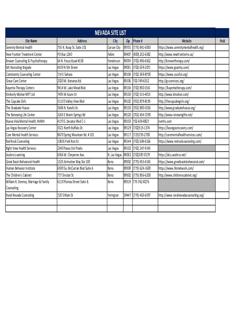 Site Name Serenity Mental Health New Frontier Treatment Center Brewer Counseling & Psychotherapy 6th Recruiting Brigade Community Counseling Center Grace Care Center Magenta Therapy Centers Kimberly