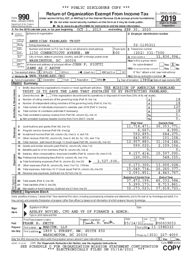*** PUBLIC DISCLOSURE COPY ***990Form (Rev. January 2020)Return of Organization Exempt From Income Tax OMB No. 15450047| Do not enter social security numbers on this form as it may be made public.