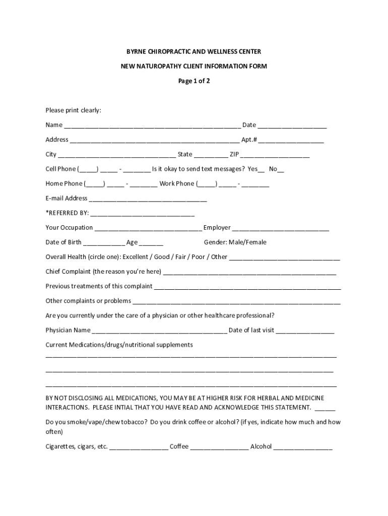 How to fill out new naturopathy client information?