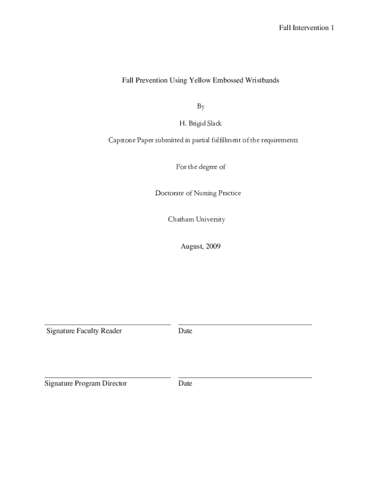 Fall Intervention 1Fall Prevention Using Yellow Embossed Wristbands By H. Brigid Slack Capstone Paper submitted in partial fulfillment of the requirements For the degree of Doctorate of Nursing Practice