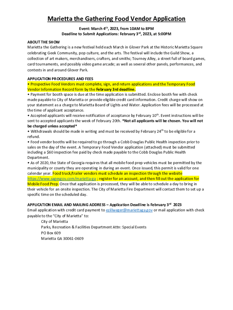 Get the free Marietta the Gathering Food Vendor Application
