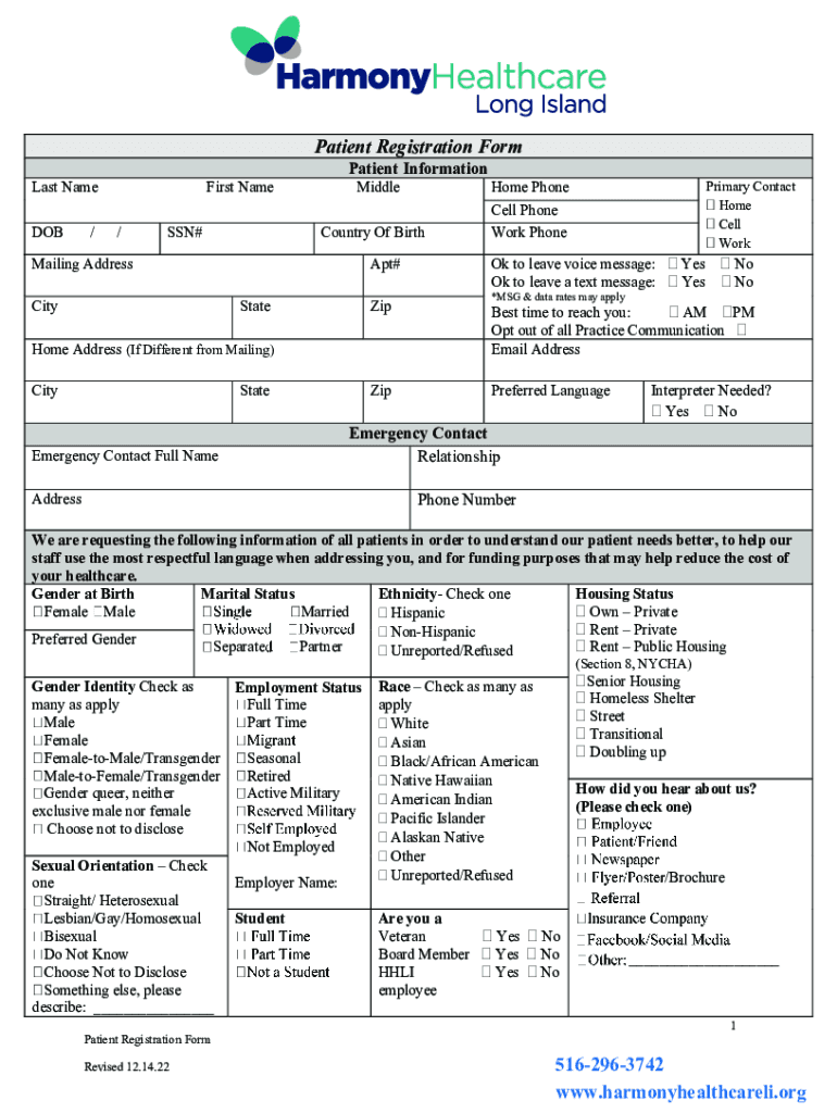 How to fill out patient registration form todays