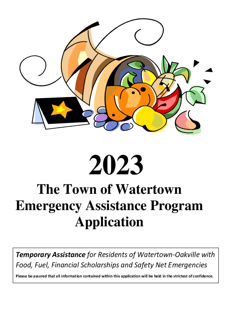 2023 The Town of Watertown Emergency Assistance Program Application Temporary Assistance for Residents of WatertownOakville with Food, Fuel, Financial Scholarships and Safety Net Emergencies Please