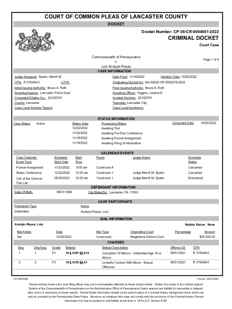 DOCKET Number: CP36CR00048012022CRIMINAL DOCKET