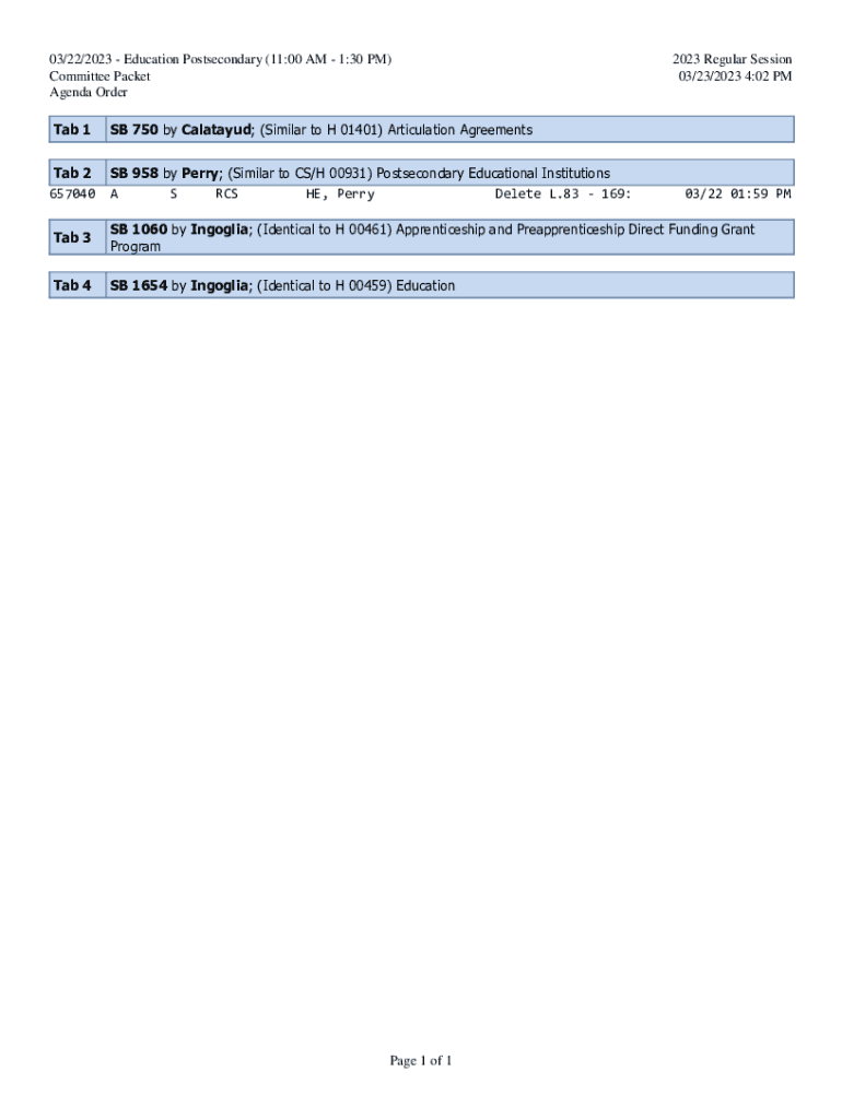 03/23/2023 4:02 PMS 750 by Calaway; (Similar to H 01401) Articulation Agreements
