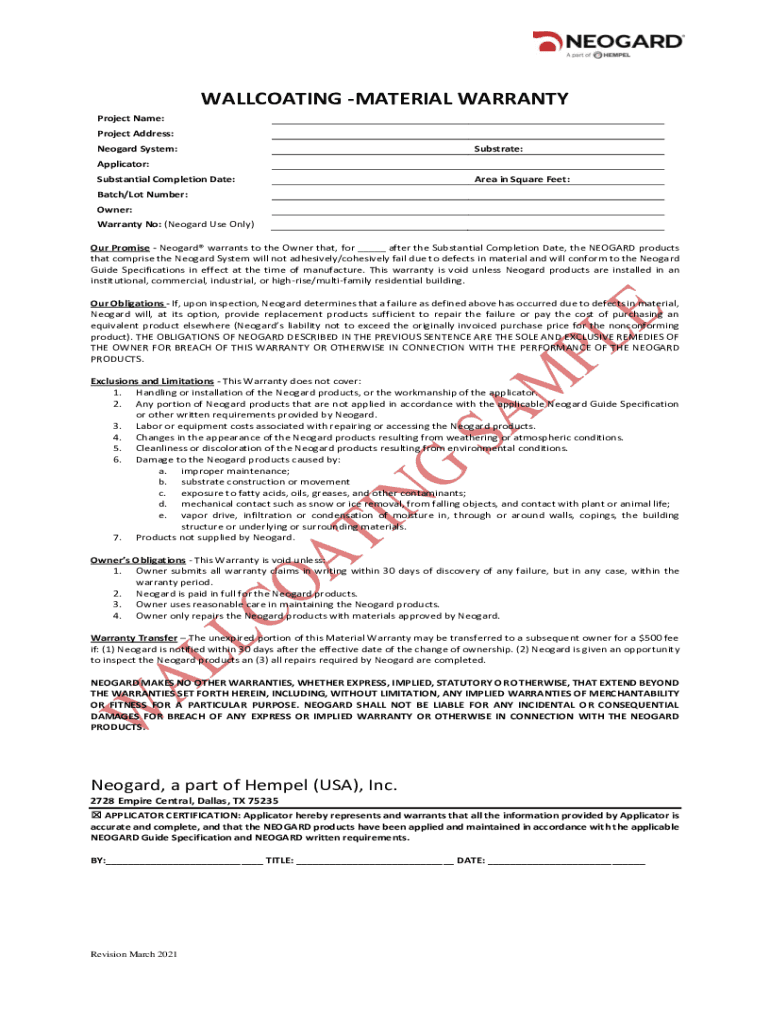 Neogard - Wall Coating is not the form you're looking for?Search for another form here.