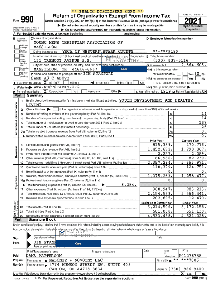 The YMCA of Western Stark is required to file their annual report with the appropriate authorities.
