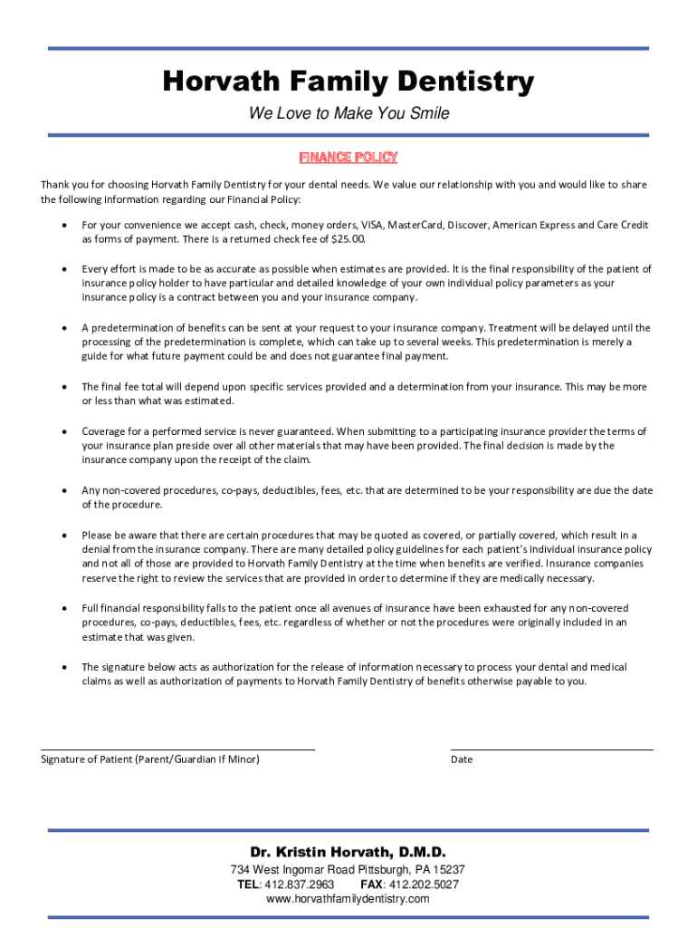 Format Family Dentistry We Love to Make You Smile FINANCE POLICY Thank you for choosing Format Family Dentistry for your dental needs. We value our relationship with you and would like to share the