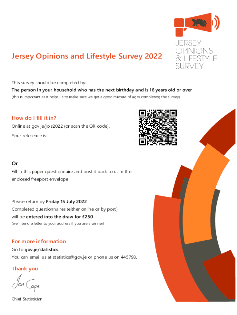Jersey Opinions and Lifestyle Survey 2022This survey should be completed by: The person in your household who has the next birthday and is 16 years old or over (this is important as it helps us to
