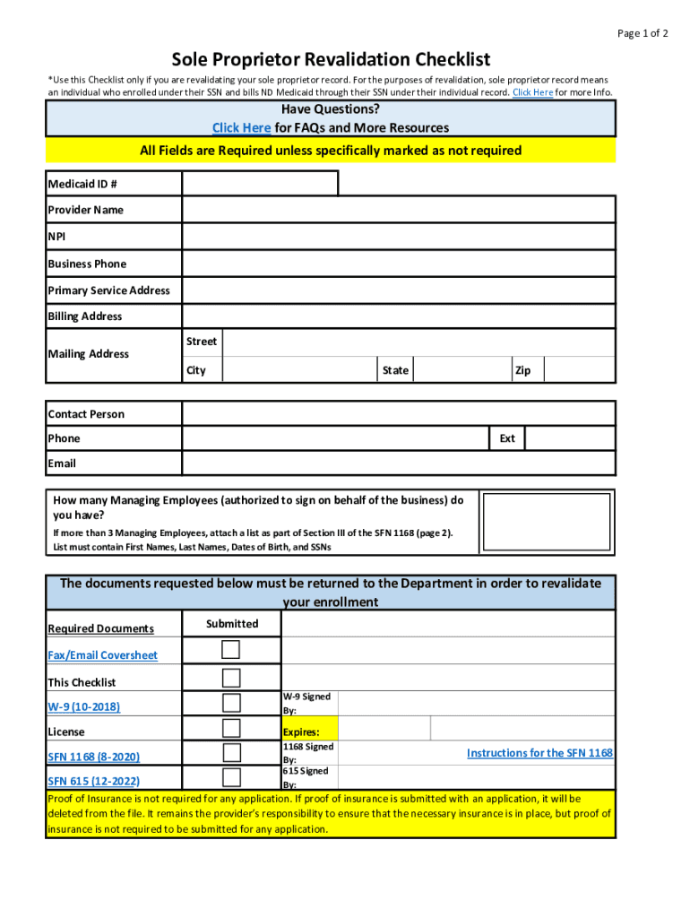 North Dakota Medicaid Sole Proprietor Revalidation Checklists You must fill out the checklist for your billing record entirely and attach the documents indicated on the checklist along with signed
