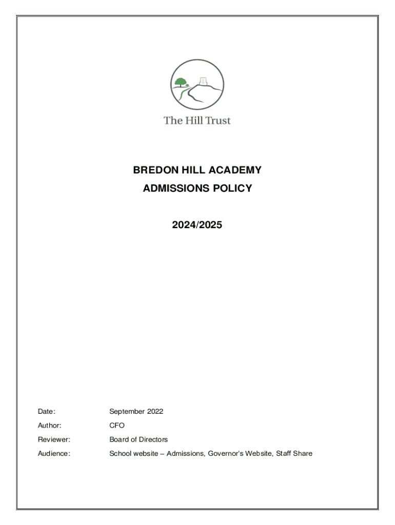 BRETON HILL ACADEMY ADMISSIONS POLICY2024/2025Date:September 2022Author:Reviewer:Board of DirectorsAudience:School website Admissions, Governors Website, Staff Sheathe Academy refers to each individual