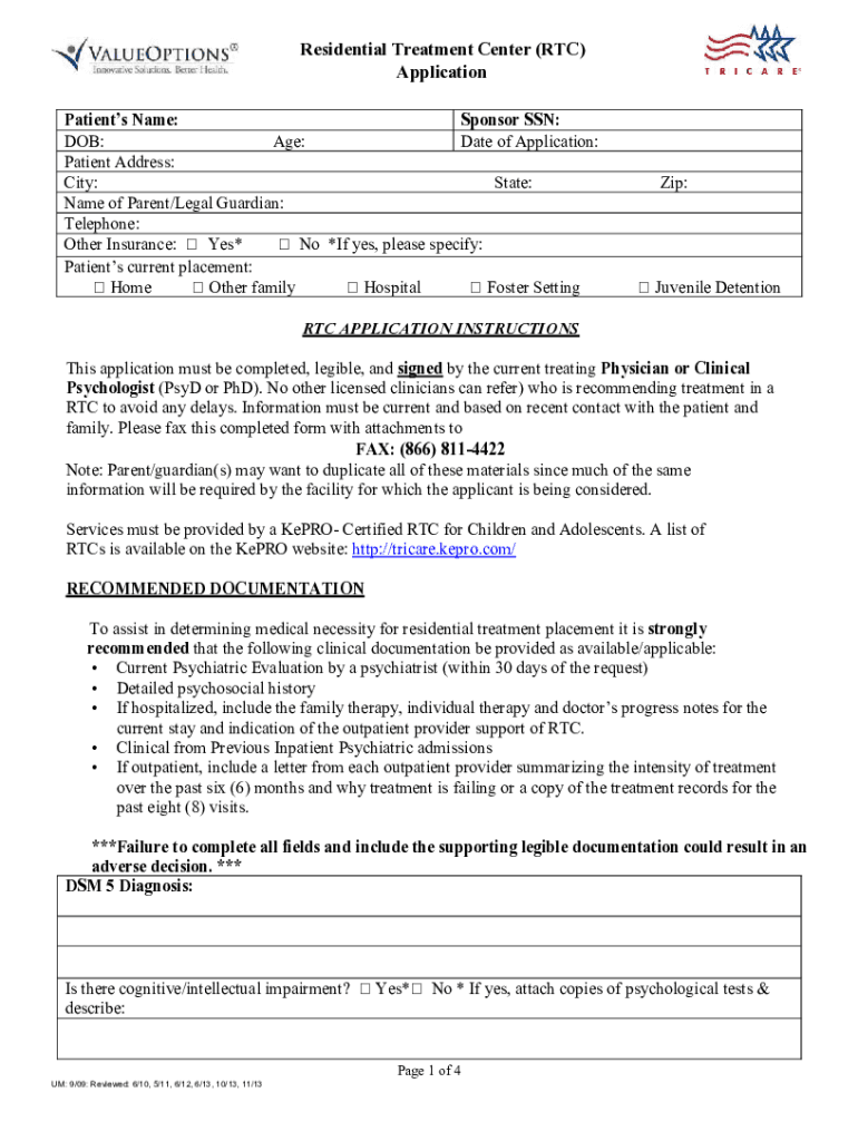 Complete the TRICARE RTC application form accurately and completely.