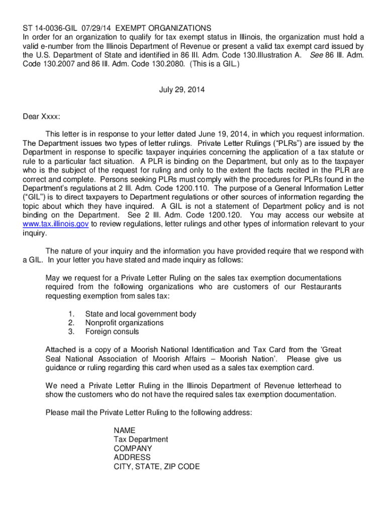 ST 140036GIL 07/29/14 EXEMPT ORGANIZATIONS In order for an organization to qualify for tax-exempt status in Illinois, the organization must hold a valid number from the Illinois Department of Revenue