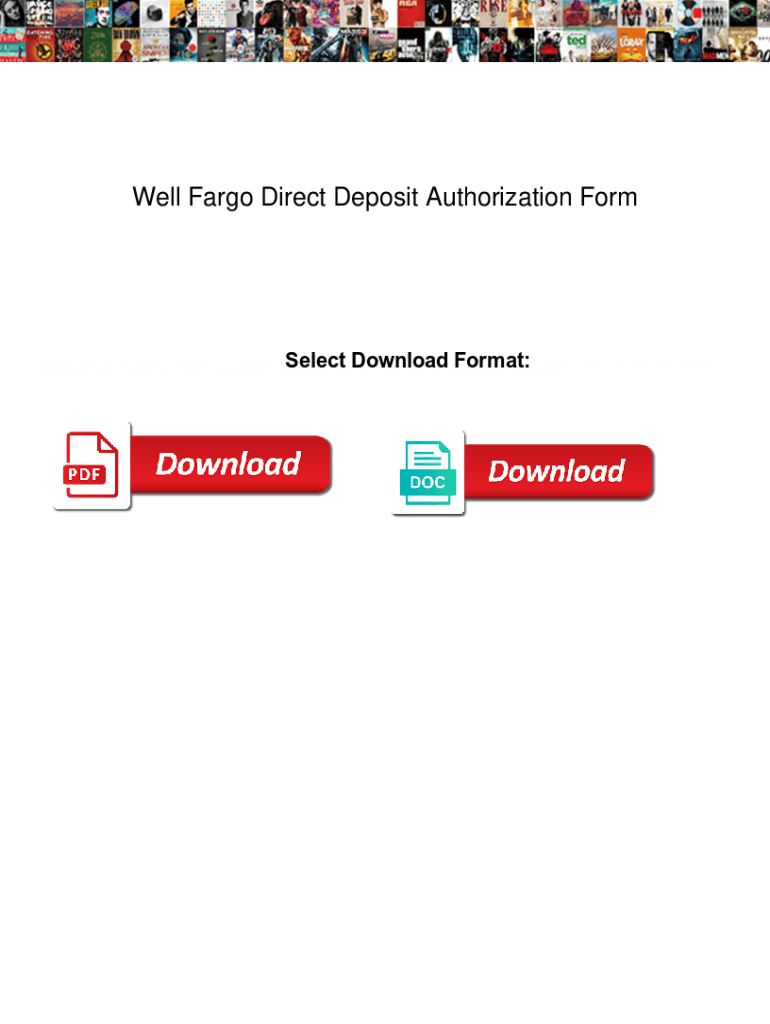 Get the free Well Fargo Direct Deposit Authorization Form. Well Fargo Direct Deposit Authorizatio...