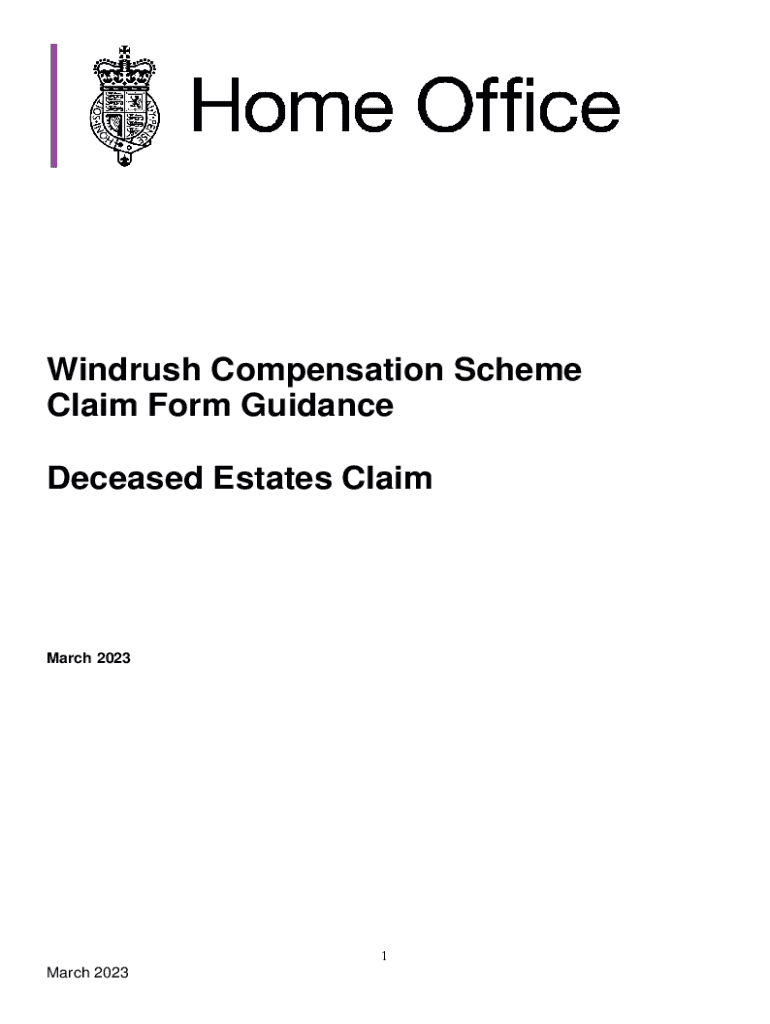 Windrush Compensation Claim Guidance is not the form you're looking for?Search for another form here.