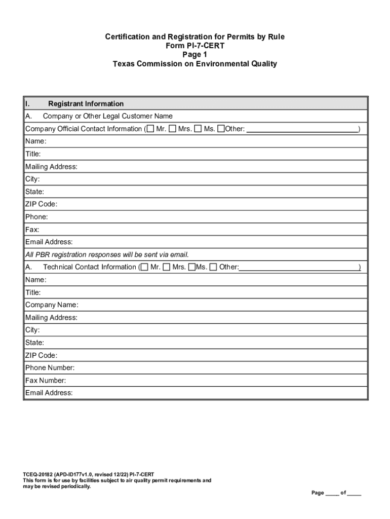 Registration and Certification for Permits by Rule Form PI7CERT Instructions Texas Commission on Environmental QualityTable of Contents Introduction .....................................................................................................................................................