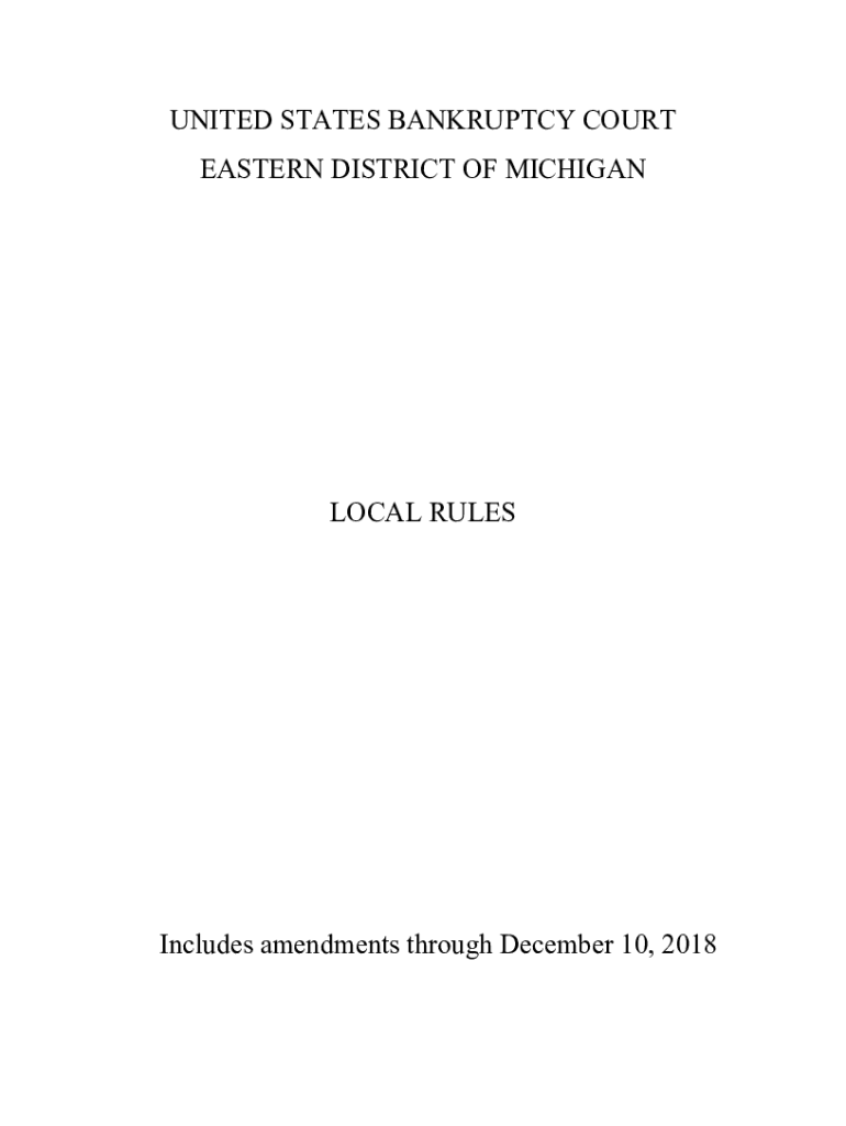 UNITED STATES BANKRUPTCY COURT EASTERN DISTRICT OF MICHIGANLOCAL RULESIncludes amendments through December 10, 2018TABLE OF CONTENTSRule 10021 Bankruptcy Petition and Cover Sheet.................................................................