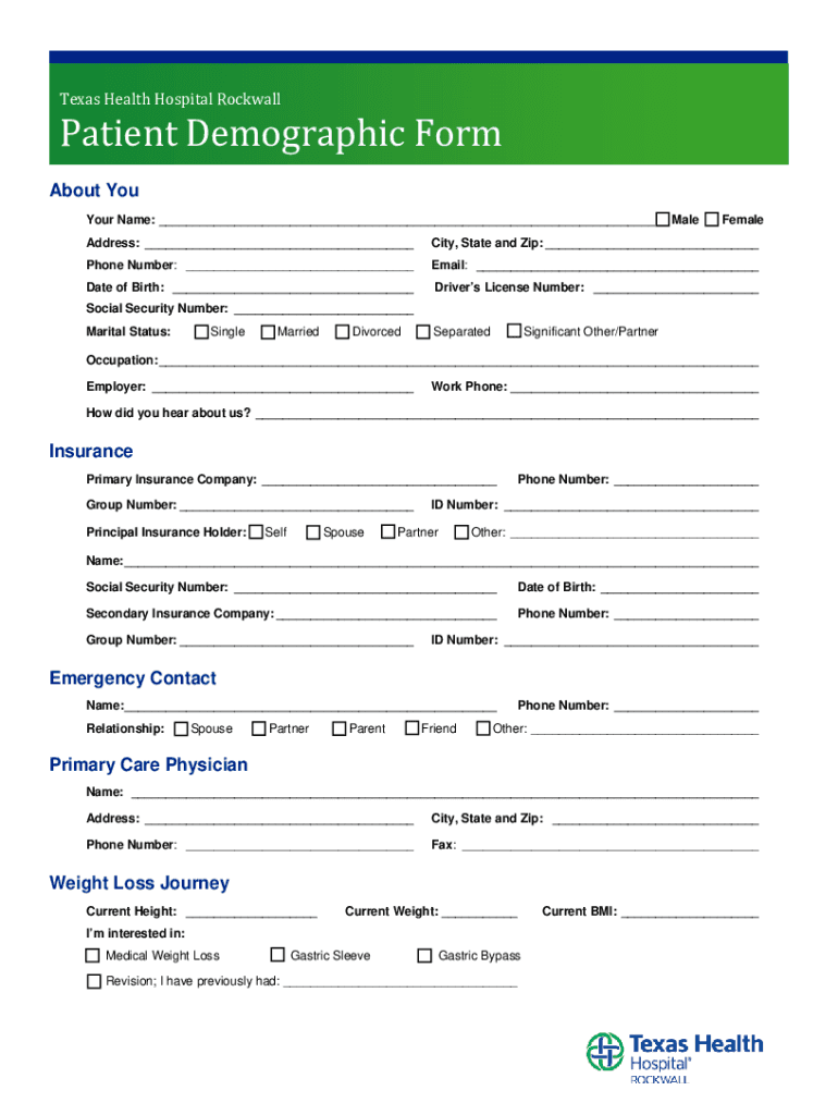 Get the free Rockwall - Bariatrics Patient Demographic Form