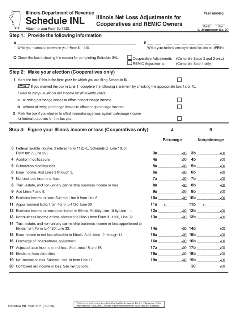 Use your mouse or Tab key to move through the fields. Use your mouse or space bar to enable check boxes. Illinois Department of RevenueAttach to your Form IL1120. Schedule Inlaid ending Illinois Net