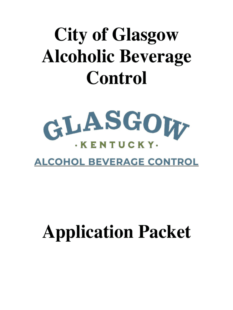City of Glasgow Alcoholic Beverage ControlApplication Packet ABC Application Instructions A. Properly complete all appropriate City and State Application Forms. All application forms including appropriate