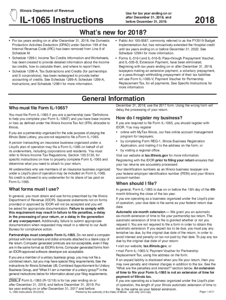 Illinois Department of RevenueIL1065 Instructions for tax year ending on or after December 31, 2018, and before December 31, 2019.2018Whats new for 2018? For tax years ending on or after December