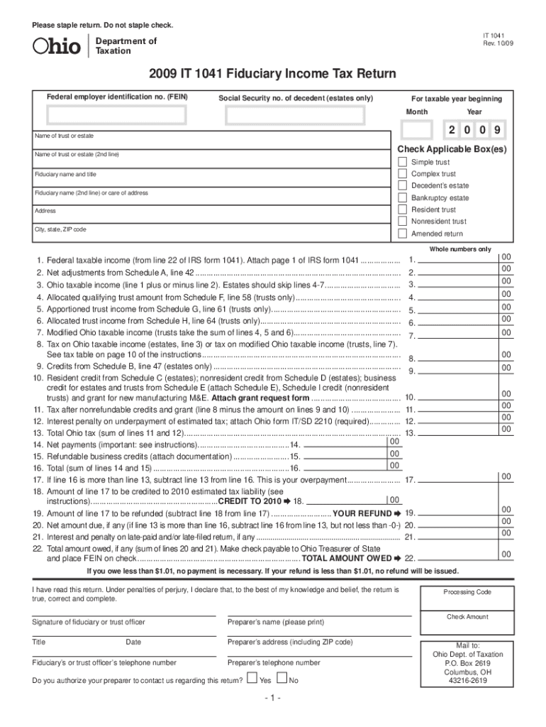 Taxation2009 IT 1041 Fiduciary Income Tax Return