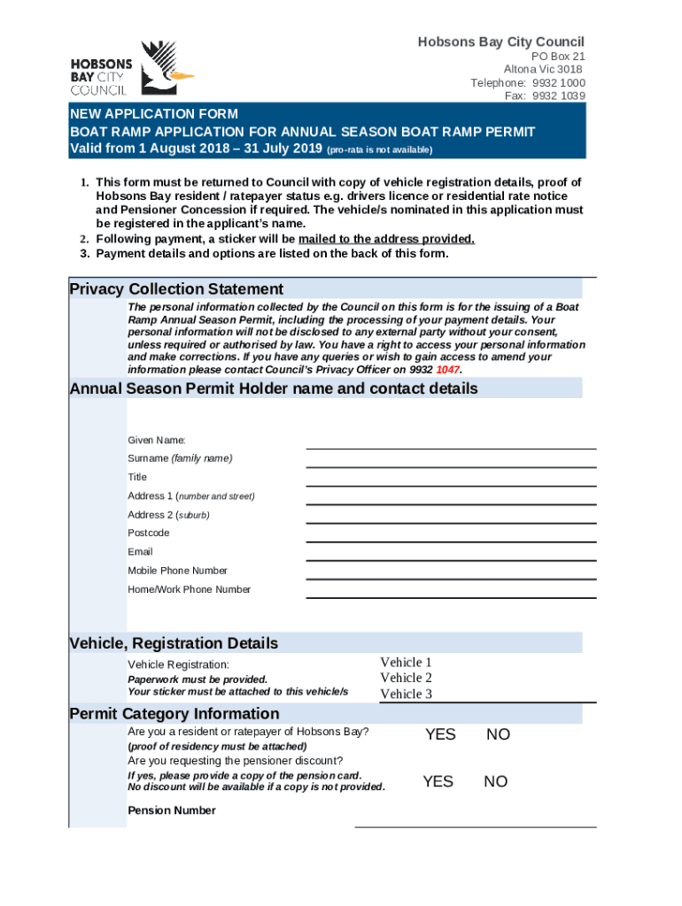 Instructions for the Boat ramp season ticket change of details - Hobsons ... form