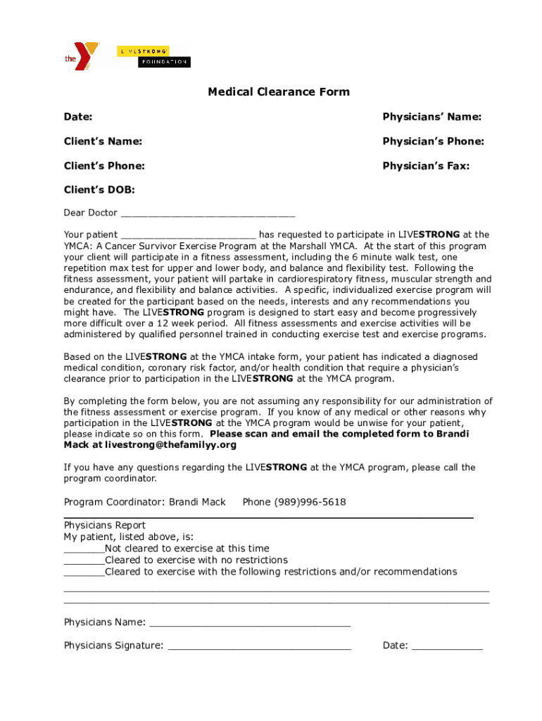 Get the free LIVESTRONG at the YMCA Medical Clearance Form