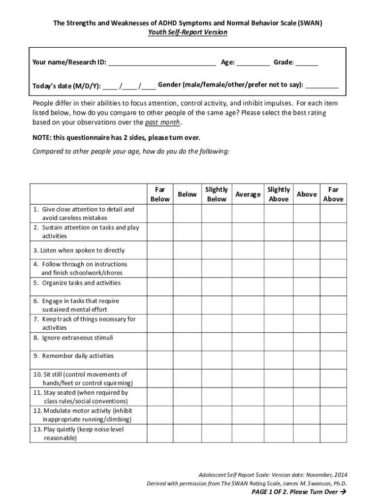 Get the free Development and applications of the SWAN rating scale for ...