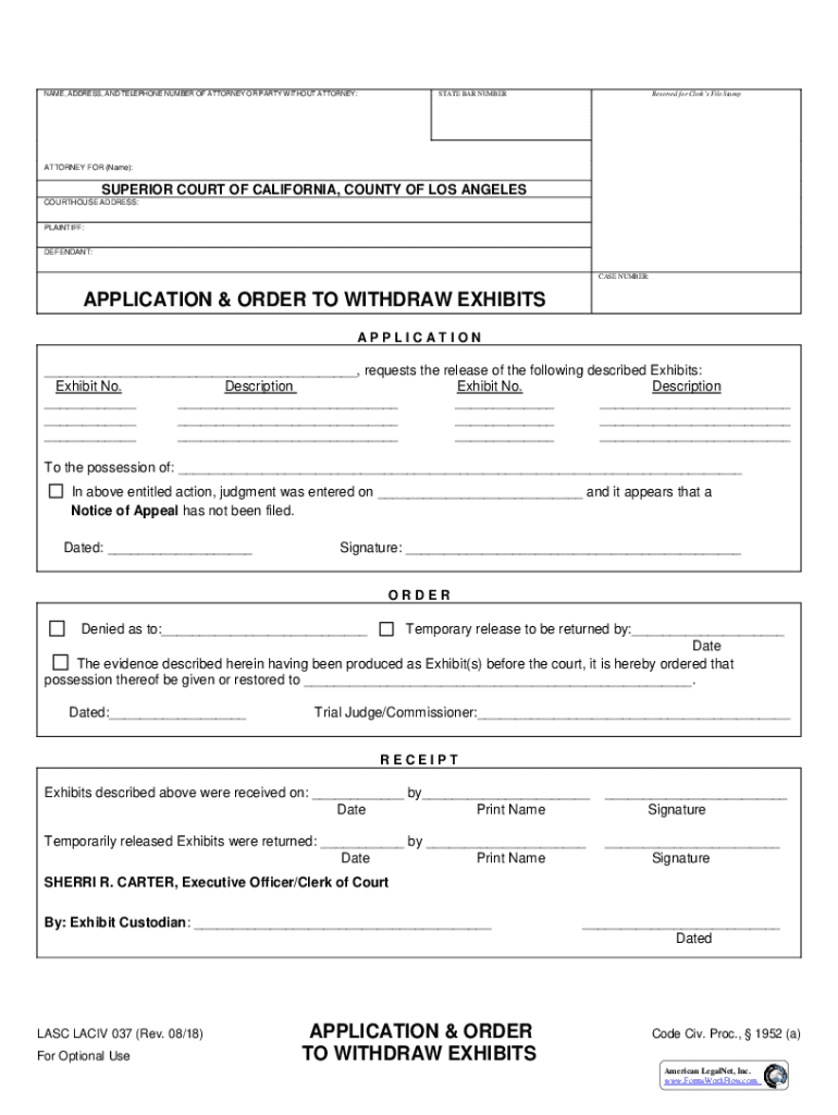 NAME, ADDRESS, AND TELEPHONE NUMBER OF ATTORNEY OR PARTY WITHOUT ATTORNEY:STATE BAR NUMBERReserved for Clerks File StampATTORNEY FOR (Name):SUPERIOR COURT OF CALIFORNIA, COUNTY OF LOS ANGELES COURTHOUSE