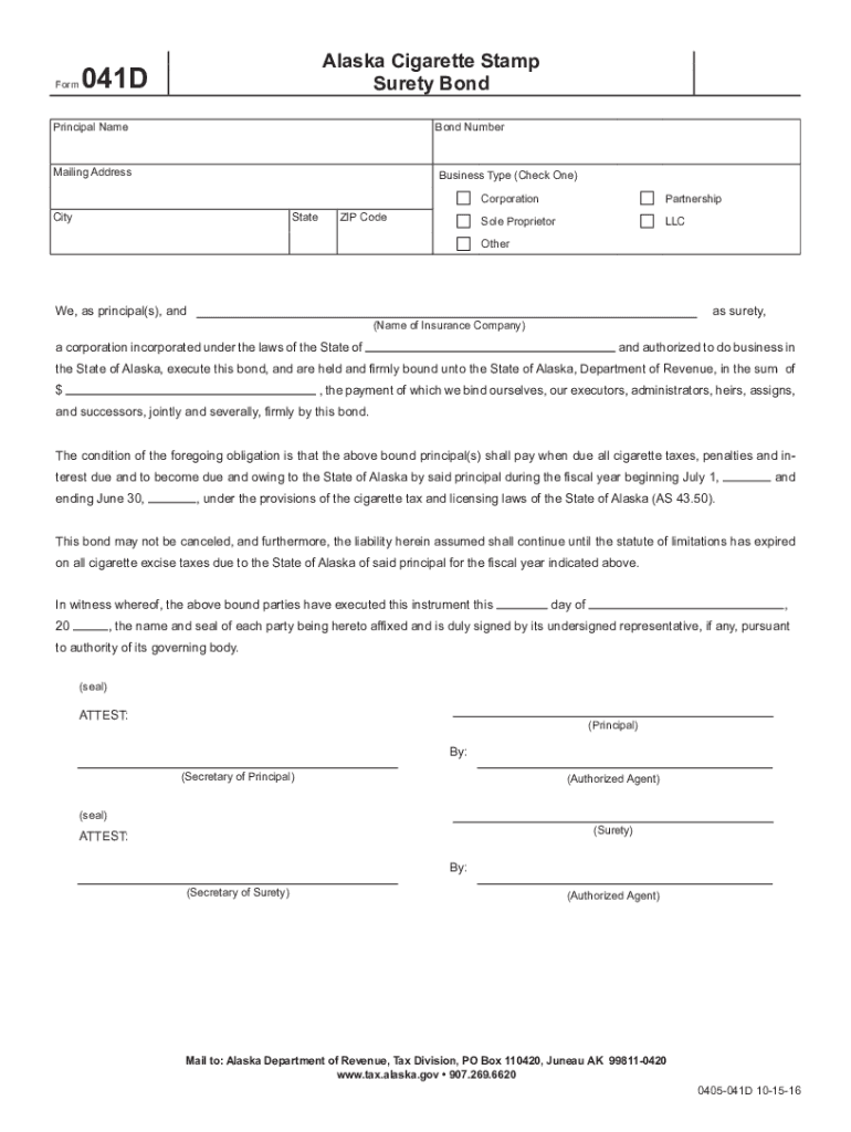 Form Alaska Cigarette Stamp
