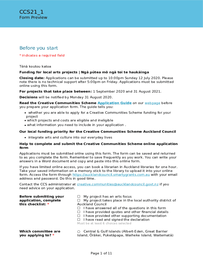 CCS21_1Form PreviewBefore you start * indicates a required ELD Tn Mouton Katia Funding for local arts projects | NG tea m NG to ite hacking Closing date: Applications can be submitted up to 10:00pm