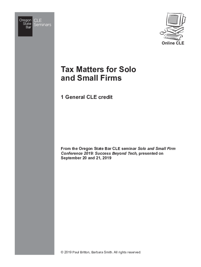 Online Clear Matters for Solo and Small Firms 1 General CLE creditors the Oregon State Bar CLE seminar Solo and Small Firm Conference 2019: Success Beyond Tech, presented on September 20 and 21, 2019