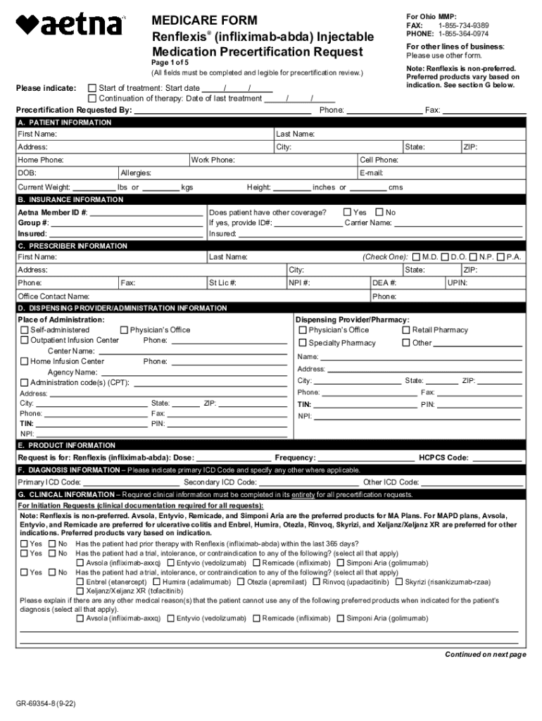 For Ohio MMP: FAX: 18557349389 PHONE: 18553640974MEDICARE FORM Reflexes (infliximababda) Injectable Medication Recertification Requestor other lines of business: Please use other form. Page 1 of 5