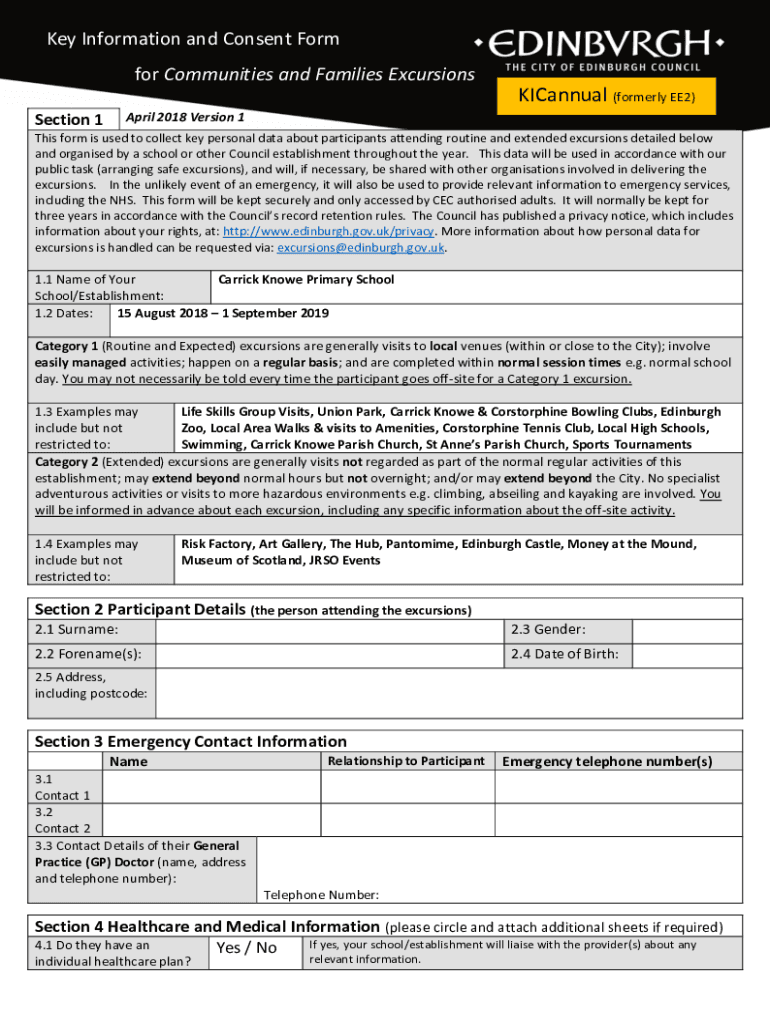 Key Information and Consent Form for Communities and Families ExcursionsKICannual (formerly EE2) April 2018 Version 1Section 1This form is used to collect key personnel data about participants attending